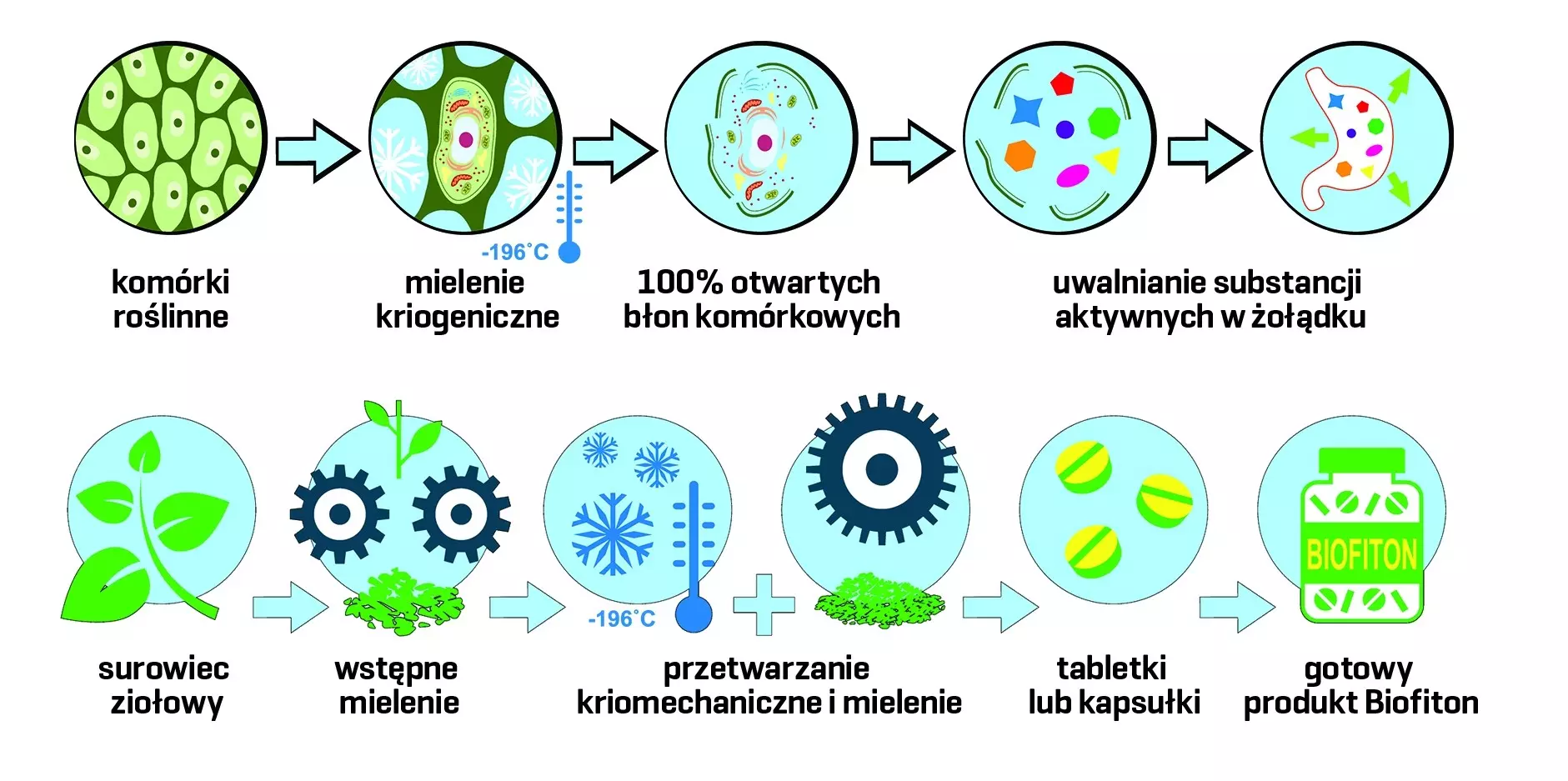 W Biofiton przyjrzeliśmy się technologii stosowanej w kriogenice i doszliśmy do wniosku, że może to być odpowiedź na problemy ze skutecznym dostarczaniem otwartych komórek roślinnych do żołądka w celu ekstrakcji i absorpcji. Przed nami było jednak sporo problemów technicznych, by uzyskać zapewnienie, że zawartość komórek nie zostanie zniszczona. Naszym celem było opracowanie technologii kriogenicznej, która dałaby praktycznie 100% biodostępności i bioaktywności żołądkowi.