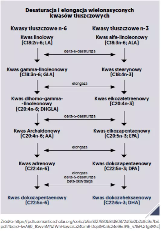 Warto jednak pamiętać, że metabolizm kwasów tłuszczowych omega-3 (ALA) i omega-6 jest ze sobą zintegrowany. Desaturacja i elongacja wymagają praktycznie tych samych enzymów, w efekcie jest mała szansa, że dojdzie do konwersji odpowiedniej ilości DHA z ALA.