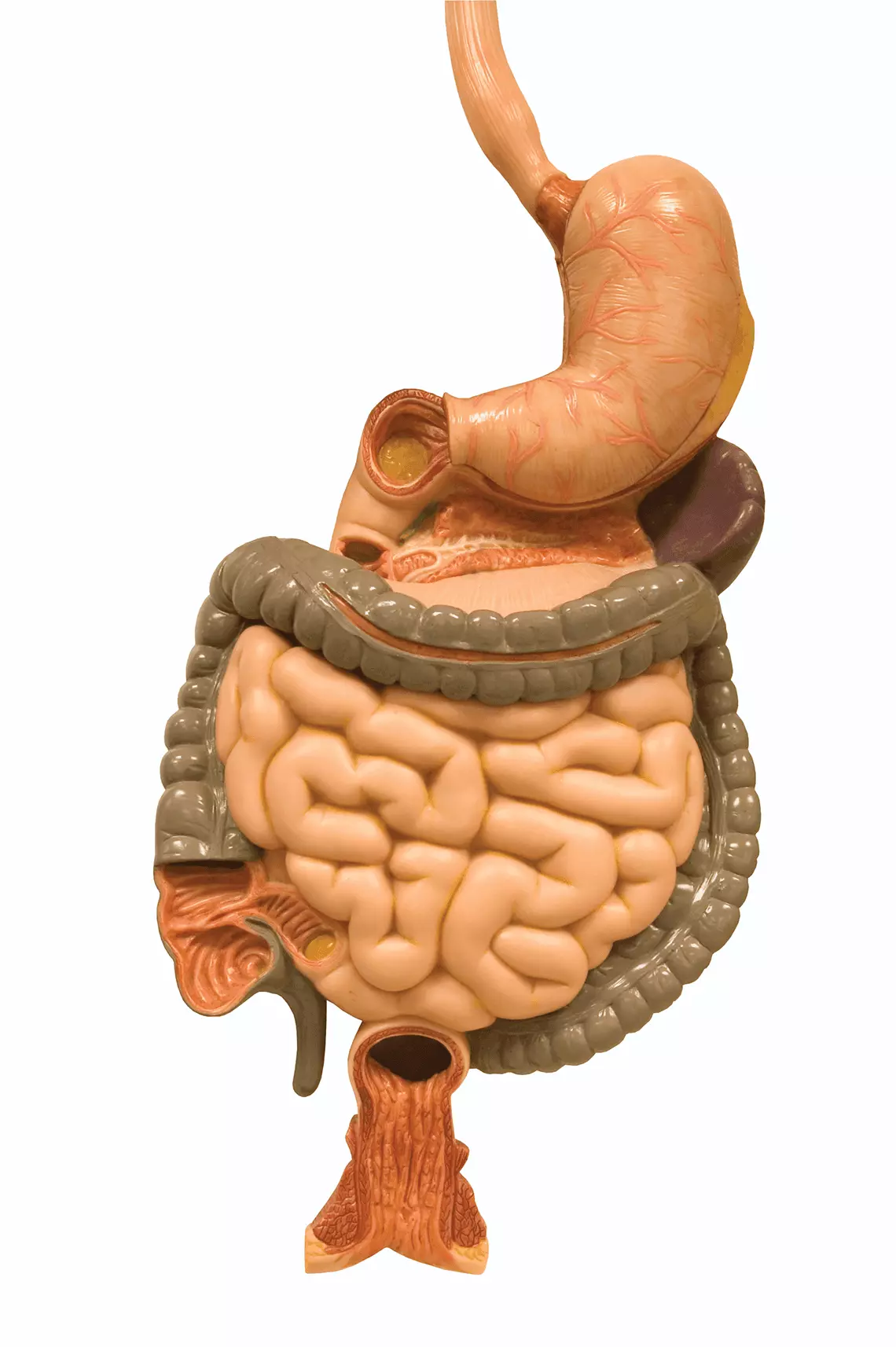 Zacznijmy od żołądka. Jest to fragment układu pokarmowego znajdujący się na wysokości od 11. kręgu piersiowego (Th11), gdzie położony jest wpust żołądka do 3. bądź 4. kręgu lędźwiowego (L3–L4). Stanowi swojego rodzaju worek, do którego wpadają pokarmy mające ulec dezynfekcji dzięki odpowiedniemu pH soku trawiennego oraz rozdrobnieniu i wstępnemu trawieniu białek.