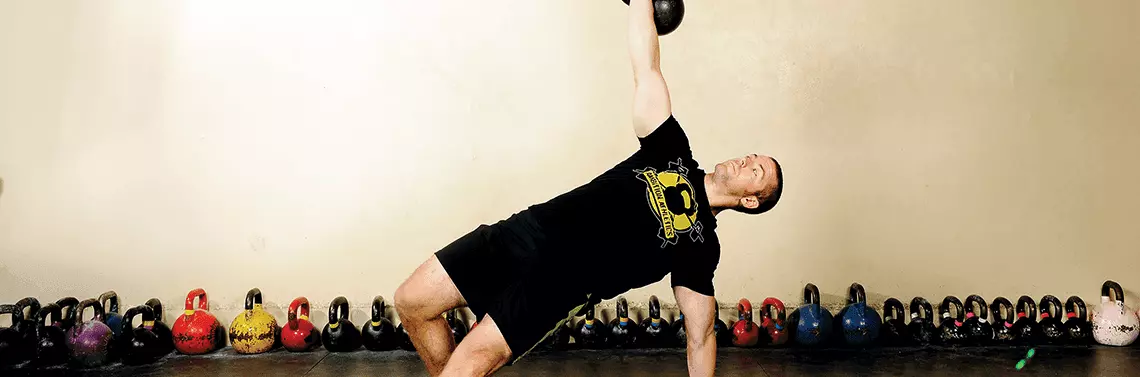 Następnie połącz w ten sposób swingi (wymachy odważnikiem) i planki (lub pompki) w 2–5 seriach.