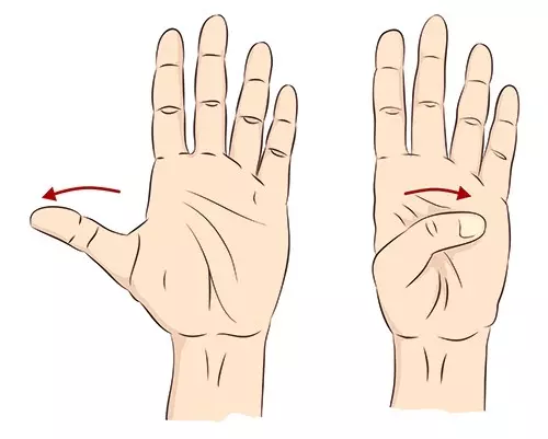 Stawa nadgarstkowo- -śródręczny kciuka: zginanie, przeciwstawianie Staw śródręczno- -paliczkowy kciuka: zginanie |
