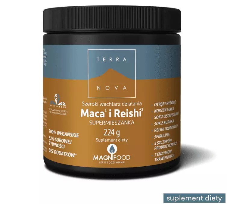 Jeśli traktujemy suplement diety zgodnie z jego przeznaczaniem, czyli uzupełniamy składniki, które powinny znaleźć się w posiłku, to Terranova przeniosła to uzupełnianie na wysoki poziom nowoczesnej dietetyki. W swojej ofercie ma wiele produktów, które celują w bardzo specyficzne potrzeby. Taki jest choćby suplement diety Supermieszanka Maca i Reishi. To wzmacniający koktajl egzotycznych składników roślinnych połączonych z mikroflorą i enzymami trawiennymi.