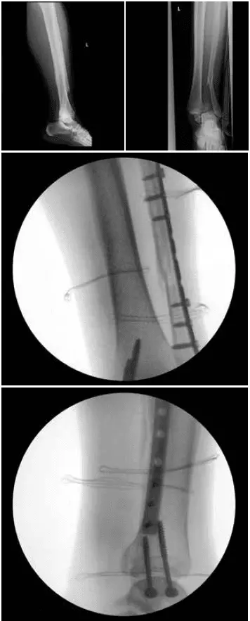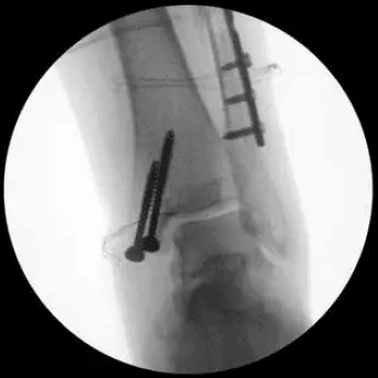 Na rehabilitację trafiła kobieta, lat 25, która w wyniku nieprawidłowego lądowania przy drugim kursie na AFF doznała wieloodłamowego złamania kości strzałkowej lewej, kostki przyśrodkowej i krawędzi tylnej piszczeli. Kończynę unieruchomiono w ortezie typu walker. Wykonano zabieg zespolenia złamania kostki bocznej płytą Medal – mocowana dwoma śrubami korowymi i czterema śrubami blokowanymi. Zespolenie kostki przyśrodkowej dwoma śrubami kostkowymi.