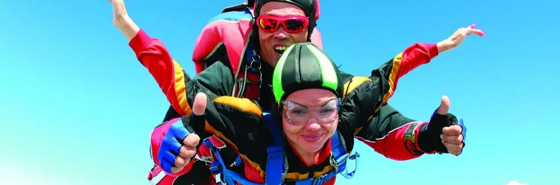 Skok tandemowy stał się obecnie najbardziej popularny. Polega na skoku z samolotu, mając spadochron dwuosobowy z osobą wykwalifikowaną (instruktorem), który otacza opieką pasażera. Jest to zdecydowanie najbezpieczniejszy z możliwych sposób przeżycia tego niesamowitego doświadczenia. Skok wykonuje się z wysokości 3000–4000 m.