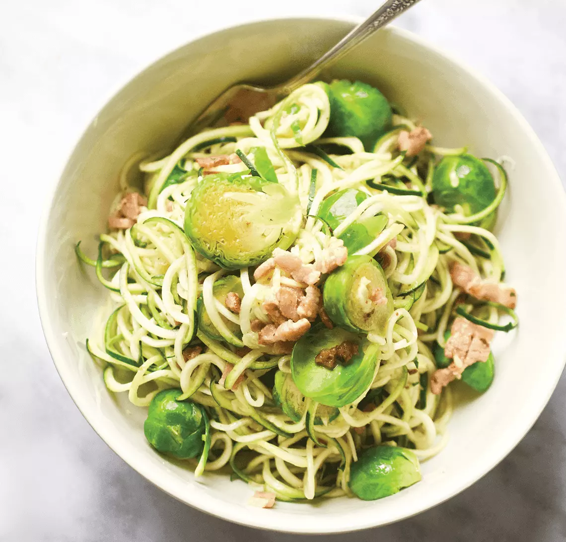 SPAGHETTI Z CUKINII Z BRUKSELKAMI i BEKONEM