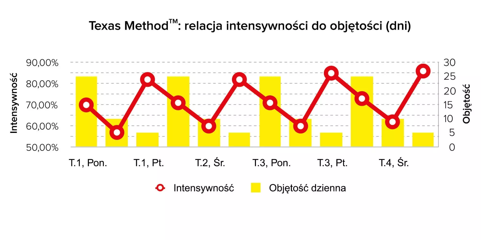 | TYDZIEŃ 1 | 40% x 5 | 50% x 5 | 60% x 3 | 65% x 5 | 75% x 5 |